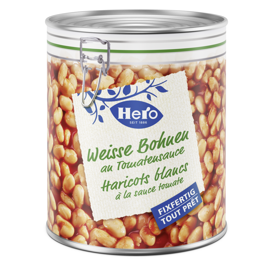 Haricots blancs à la sauce tomate. Tout prêt, préparation rapide et simple.