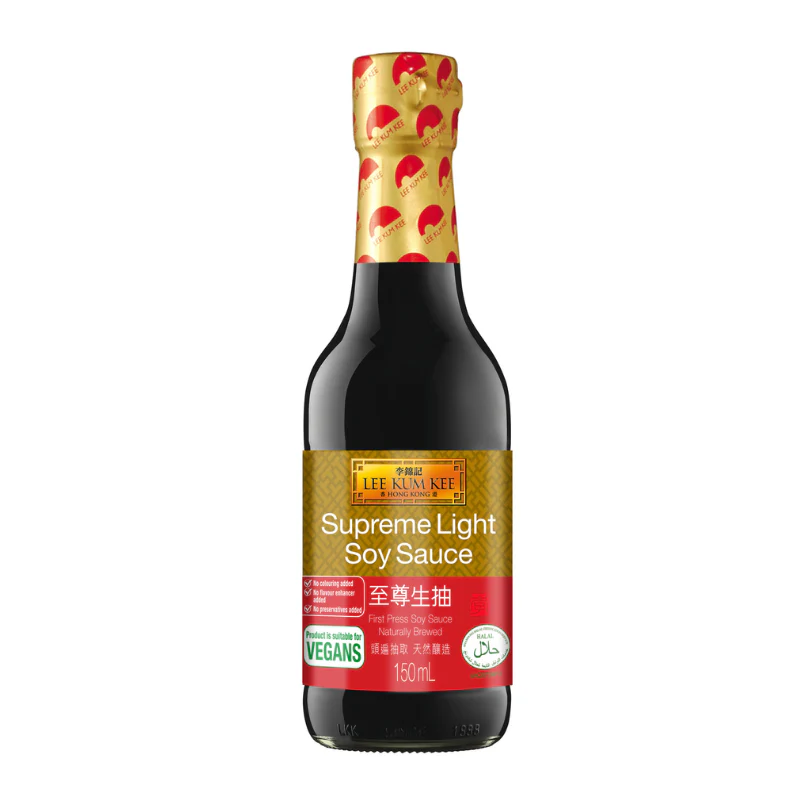 La sauce soja supérieure claire LEE KUM KEE 150ml est élaborée à partir de fèves de soja non génétiquement modifiées, selon un processus de fermentation naturelle. Sans ajout de glutamate, de conservateurs ni d’ingrédients d’origine animale, elle est 100% vegan et respecte le goût authentique de la cuisine asiatique. Sa saveur délicate et son umami naturel relèvent subtilement toutes vos préparations. Idéale pour assaisonner, mariner, sauter ou préparer des sauces et dips, elle peut même remplacer le sel pour apporter une touche gourmande et équilibrée à tous vos plats.
